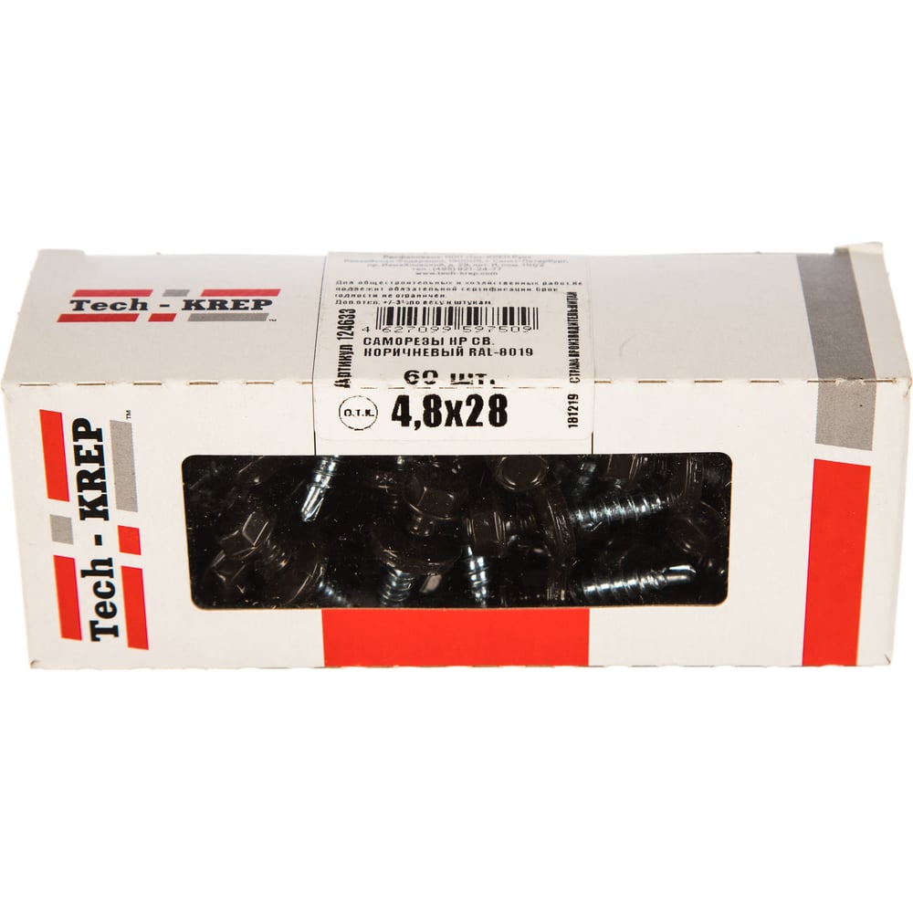 Кровельный саморез Tech-Krep КР сверло 4,8х28 RAL-8019 коричневый 60 шт, коробка с окном 124633