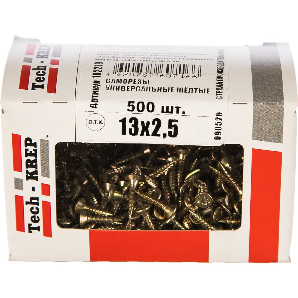 Универсальный саморез Tech-Krep 13х2,5 мм 500 шт желтый, коробка с окном 102219