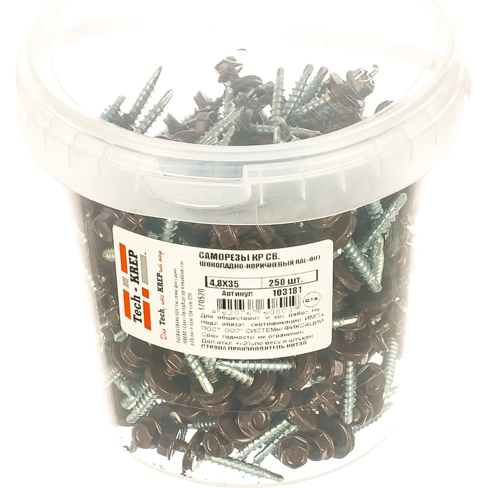 Кровельный саморез Tech-Krep КР сверло 4,8х35 RAL-8017 шоколадно-коричневый 250 шт, ведро 103181
