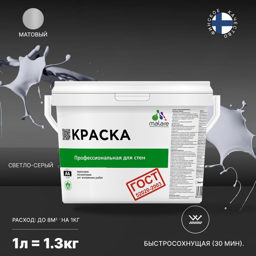 Краска для стен и потолков в сухих помещениях MALARE ГОСТ (светло-серый; 1 л) 2036768243050