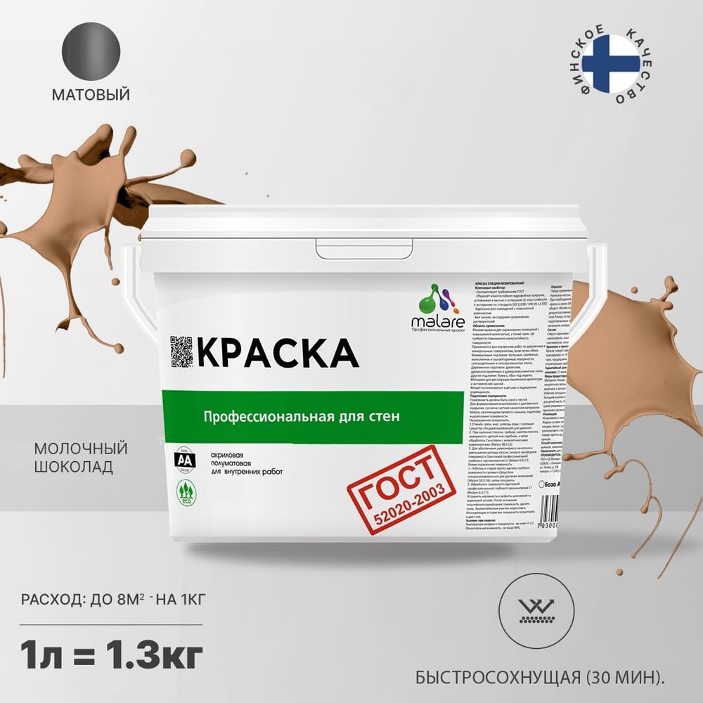 Краска для стен и потолков в сухих помещениях MALARE ГОСТ (молочный шоколад; 1 л) 2036767661541