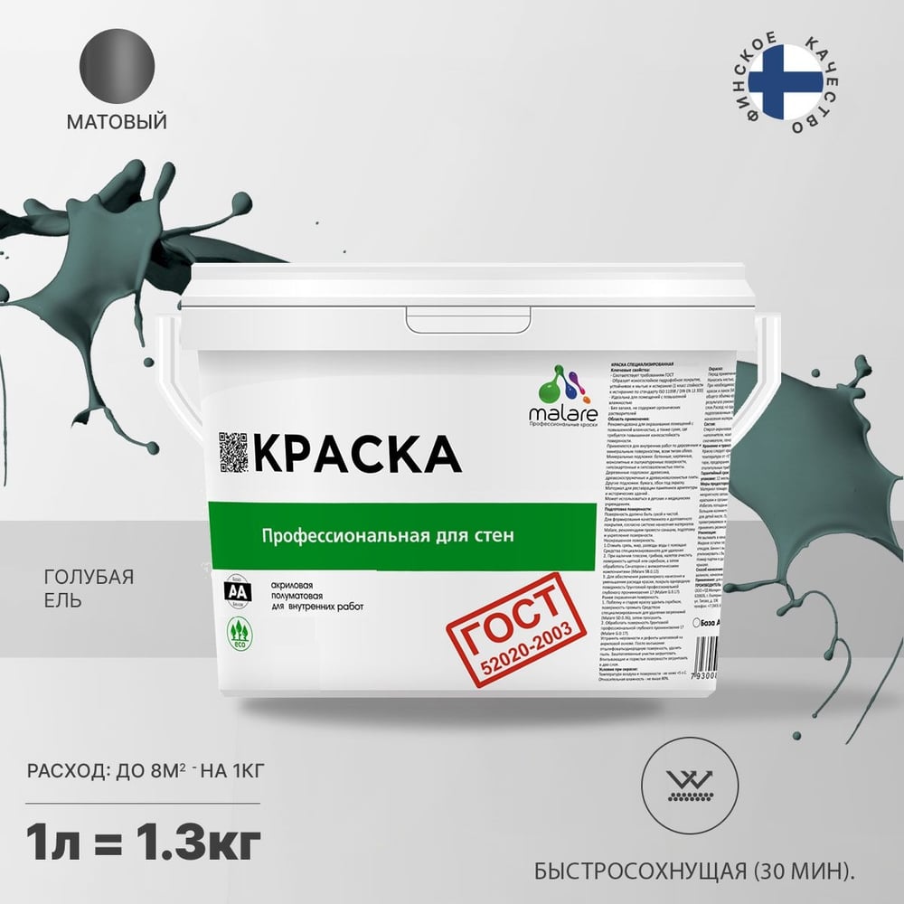 Краска для стен и потолков в сухих помещениях MALARE ГОСТ (голубая ель; 1 л) 2036767661497
