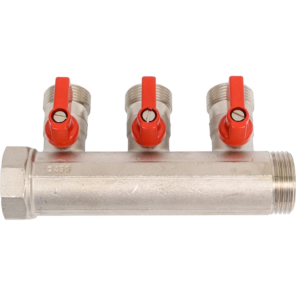 Коллектор HENCO 1" с красными шаровыми кранами, 3/4"НР евроконус, 1"-3xEK14,16,18,20 VB060503-ROOD