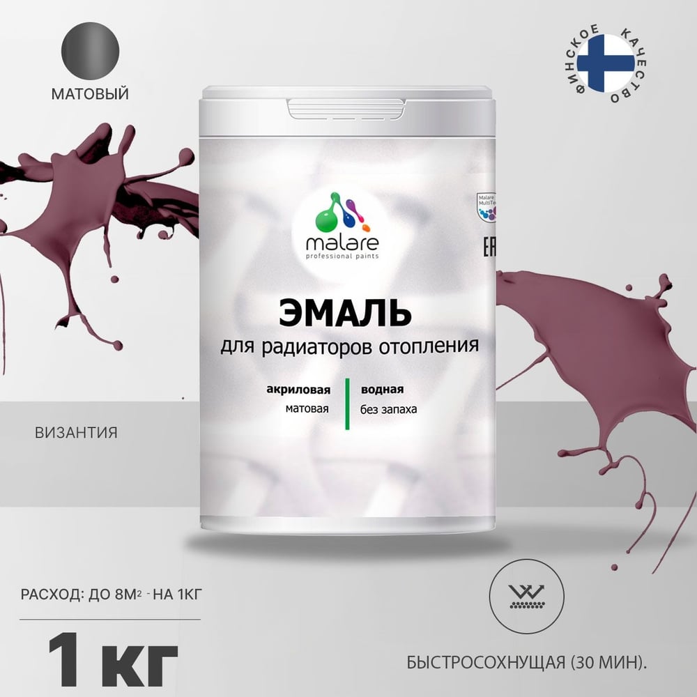 Эмаль EcoCorr MALARE для труб и радиаторов отопления, для батарей, водная акриловая без запаха матовая, византия, 1 кг ЭЭКОВИЗМ0100