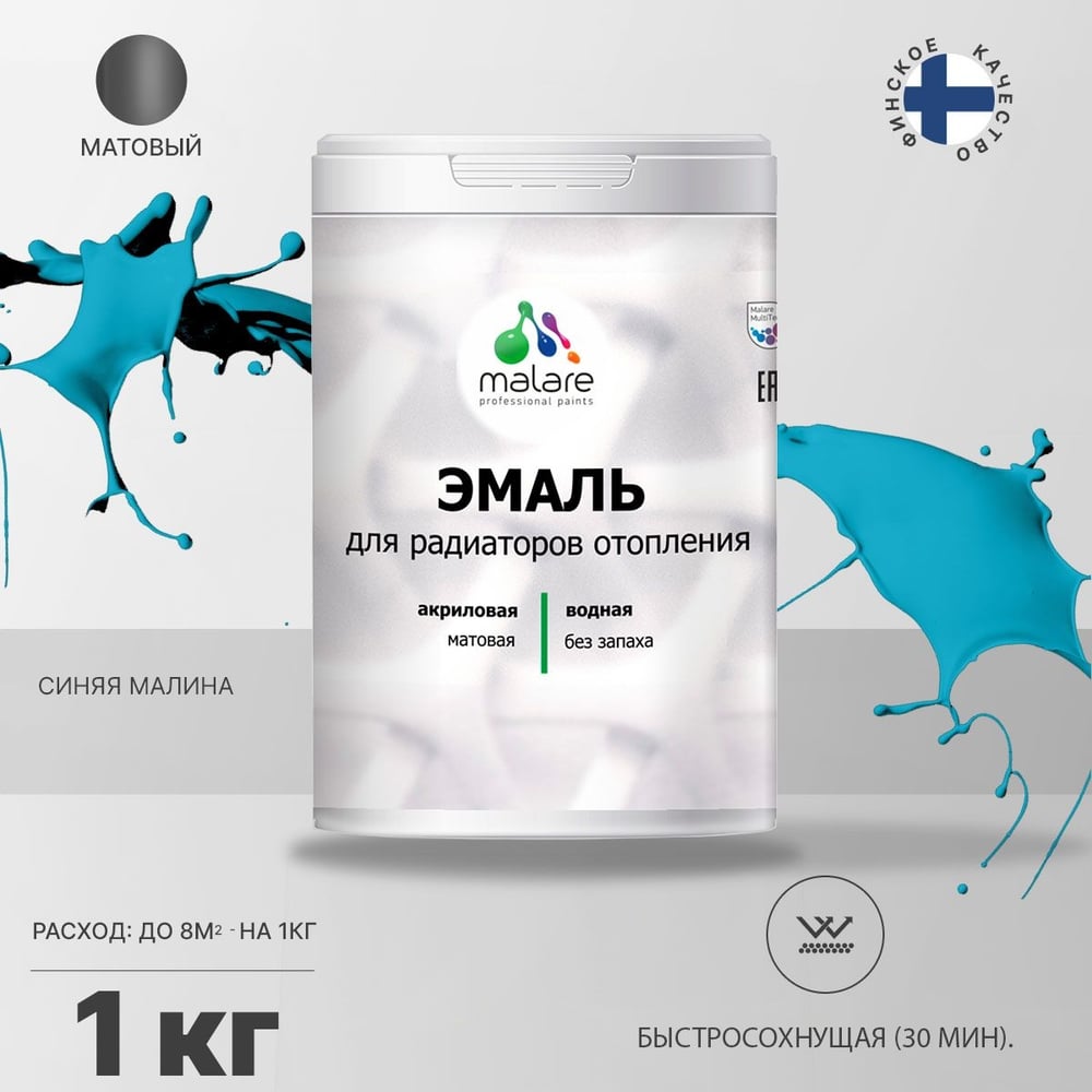 Эмаль EcoCorr MALARE для труб и радиаторов отопления, для батарей, водная акриловая без запаха матовая, синяя малина, 1 кг ЭЭКОСИММ0100