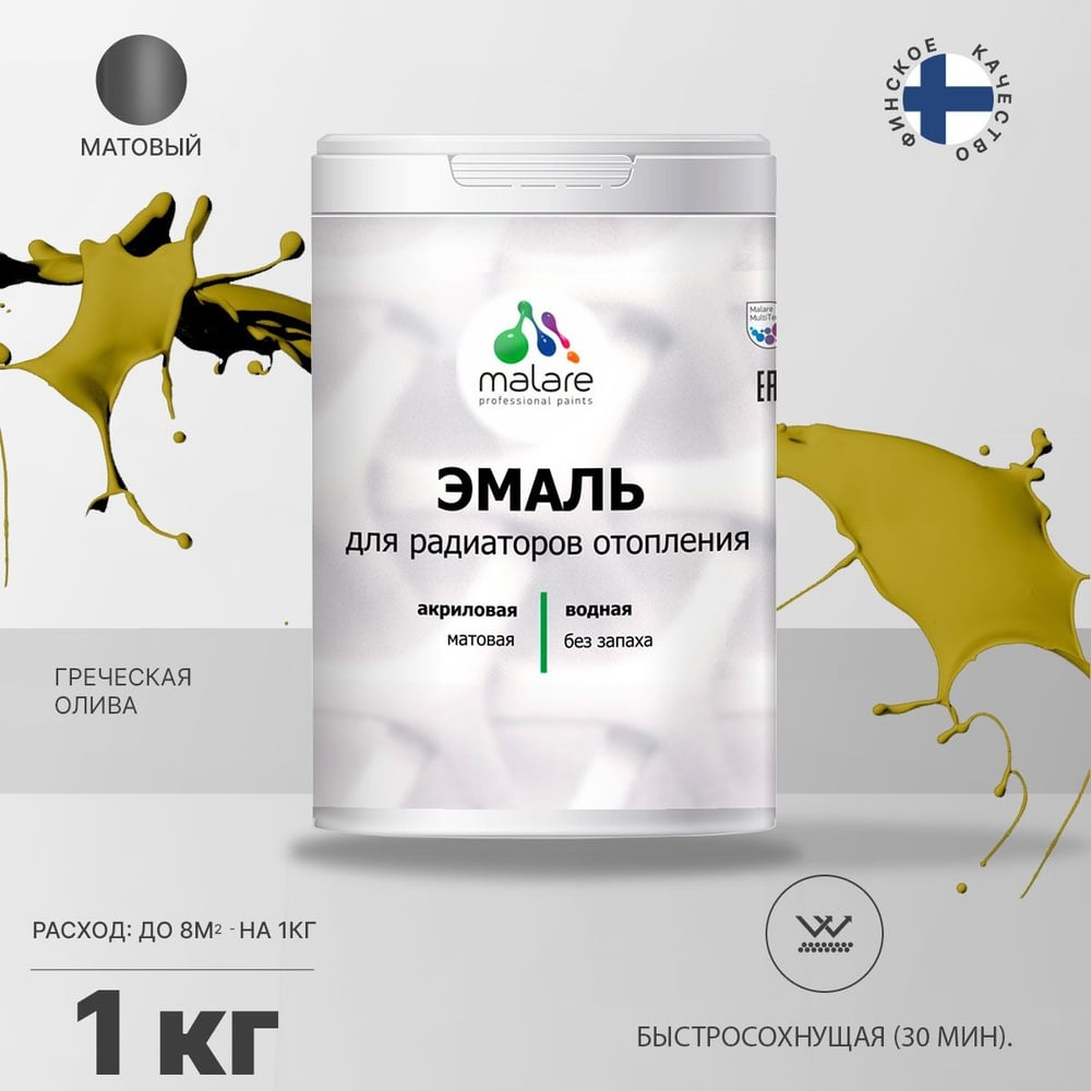 Эмаль EcoCorr MALARE для труб и радиаторов отопления, для батарей, водная акриловая без запаха матовая, греческая олива, 1 кг ЭЭКОГРОМ0100