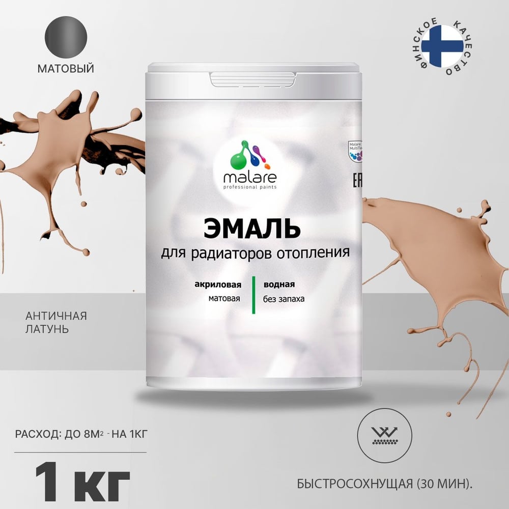 Эмаль EcoCorr MALARE для труб и радиаторов отопления, для батарей, водная акриловая без запаха матовая, античная латунь, 1 кг ЭЭКОАНЛМ0100