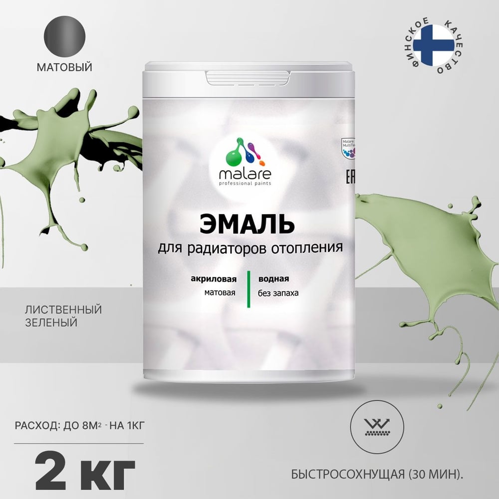 Эмаль EcoCorr MALARE для труб и радиаторов отопления, для батарей, водная акриловая без запаха матовая, лиственный зеленый, 2 кг ЭЭКОЛИЗМ0200