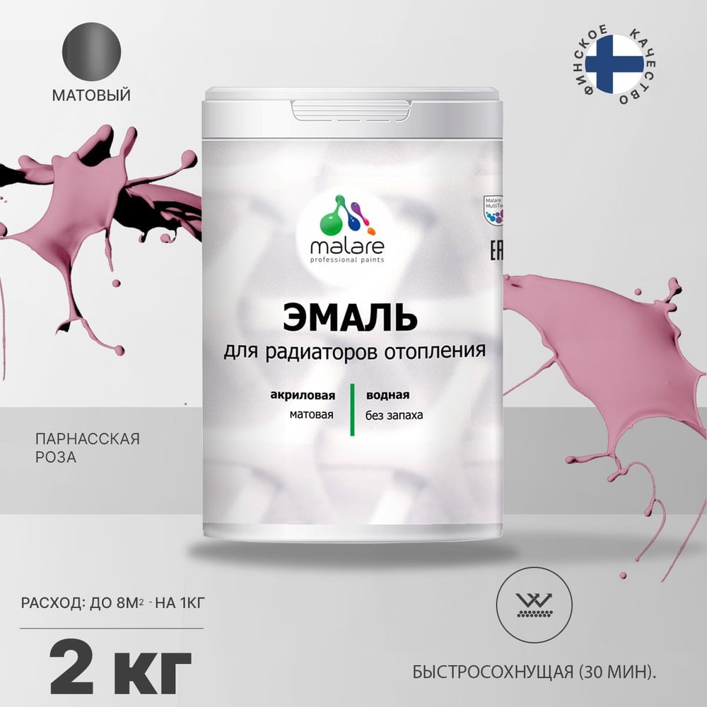 Эмаль EcoCorr MALARE для труб и радиаторов отопления, для батарей, водная акриловая без запаха матовая, парнасская роза, 2 кг ЭЭКОПАРМ0200