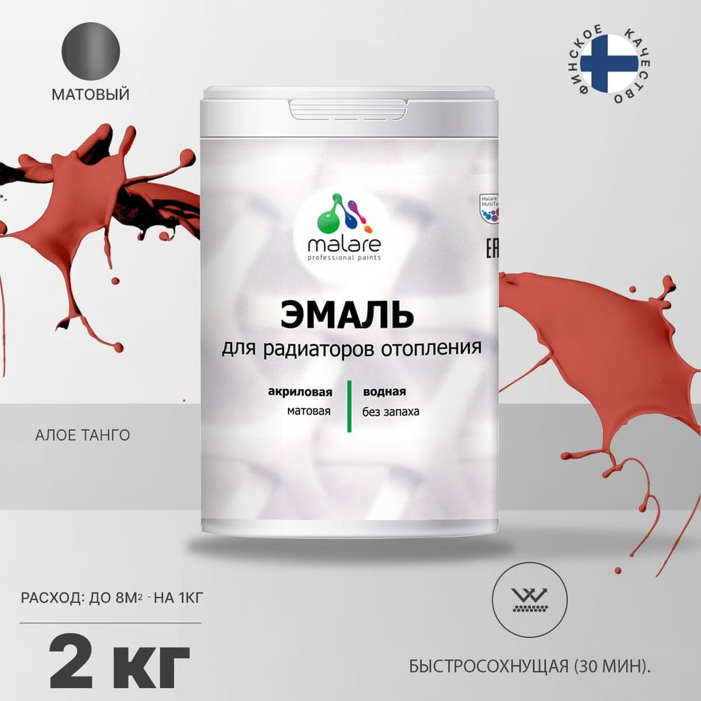 Эмаль EcoCorr MALARE для труб и радиаторов отопления, для батарей, водная акриловая без запаха матовая, алое танго, 2 кг ЭЭКОАЛТМ0200