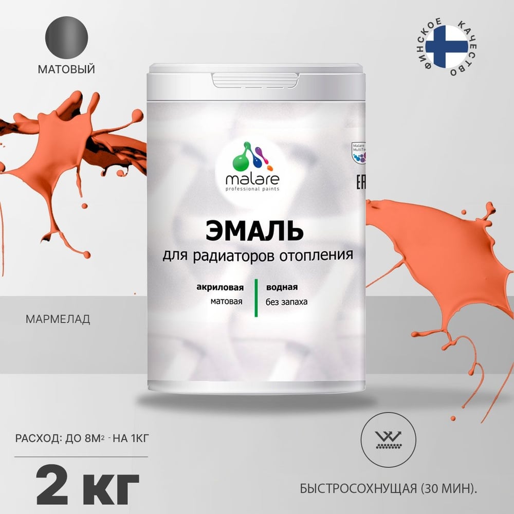 Эмаль EcoCorr MALARE для труб и радиаторов отопления, для батарей, водная акриловая без запаха матовая, мармелад, 2 кг ЭЭКОМАРМ0200