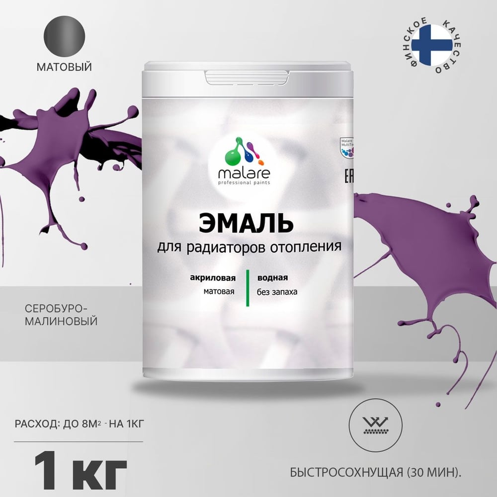 Эмаль EcoCorr MALARE для труб и радиаторов отопления, для батарей, водная акриловая без запаха матовая, серобуромалиновый, 1 кг ЭЭКОСБММ0100