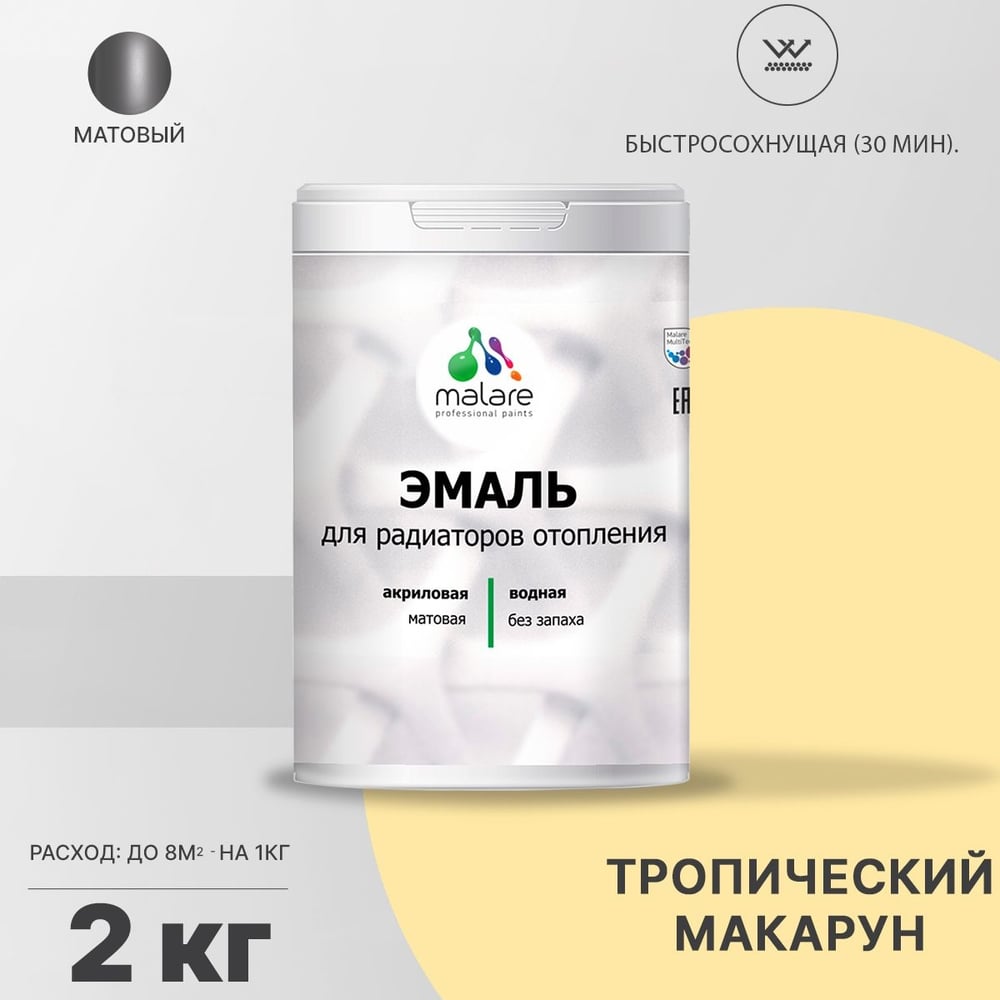 Эмаль EcoCorr MALARE для труб и радиаторов отопления, для батарей, водная акриловая без запаха матовая, тропический макарун, 2 кг ЭЭКОТРММ0200