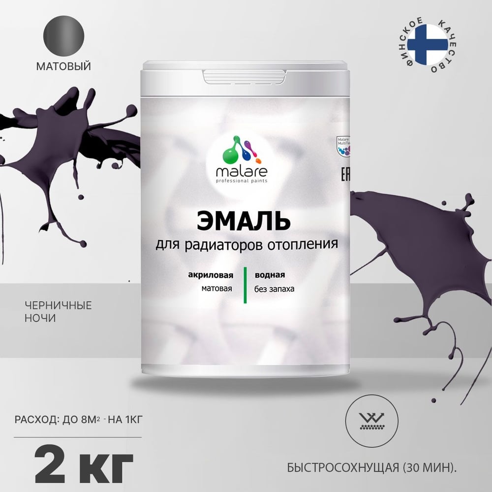 Эмаль EcoCorr MALARE для труб и радиаторов отопления, для батарей, водная акриловая без запаха матовая, черничные ночи, 2 кг ЭЭКОЧЕНМ0200