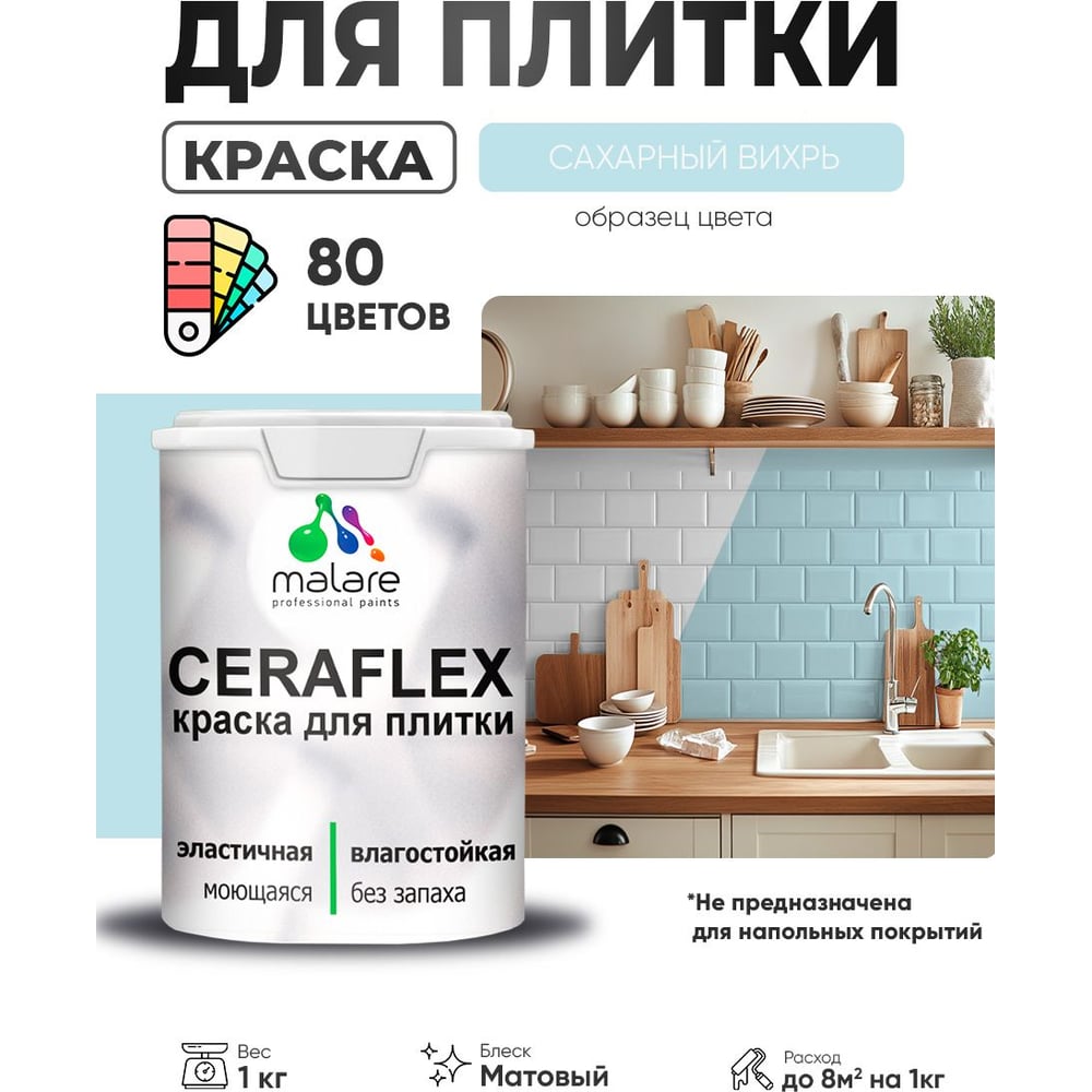 Краска акриловая MALARE Ceraflex для плитки, сахарный вихрь, матовый, 1 кг ККРФЛКСАСАВМ0100