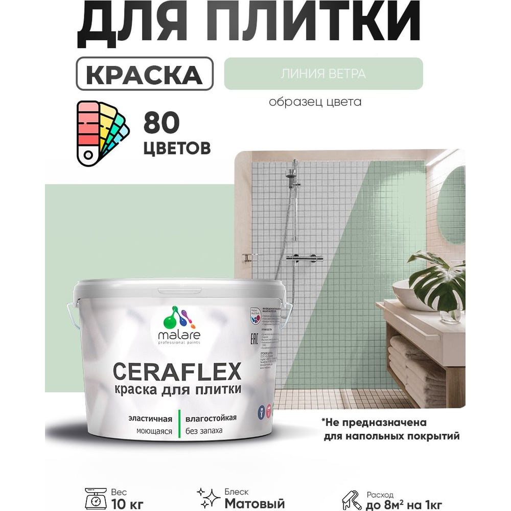 Краска акриловая MALARE Ceraflex для плитки, линия ветра, матовый, 10 кг ККРФЛКСАЛИВМ1000