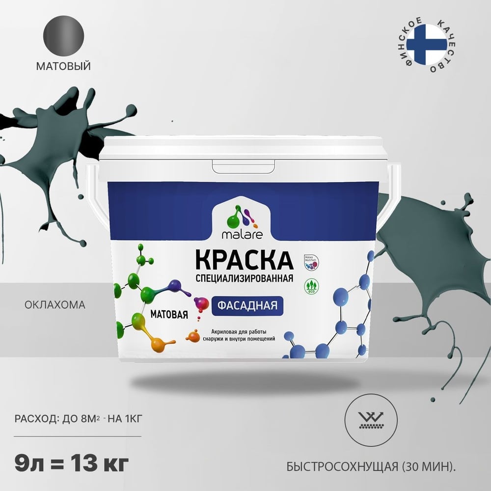 Фасадная краска MALARE Professional цвет оклахома, 9 л 2036756199130