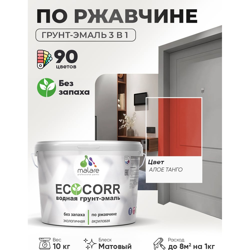 Грунт-Эмаль 3в1 MALARE EcoCorr для металлических поверхностей, акриловая быстросохнущая без запаха, матовая, алое танго, 10 кг ГЭЭКОАЛТМ1000
