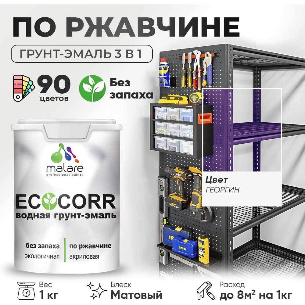 Грунт-Эмаль 3в1 MALARE EcoCorr для металлических поверхностей, акриловая быстросохнущая без запаха, матовая, георгин, 1 кг ГЭЭКОГЕОМ0100