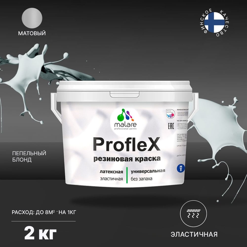 Резиновая краска MALARE Proflex для фасадов, крыш и цоколей, матовая, пепельный блонд, 2 кг 2036771742564