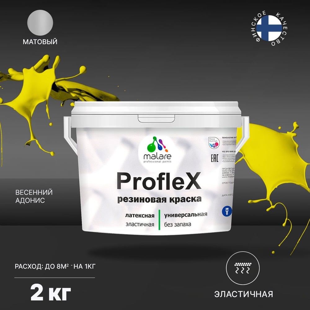 Резиновая краска MALARE Proflex для фасадов, крыш и цоколей, матовая, весенний адонис, 2 кг 2036750079308