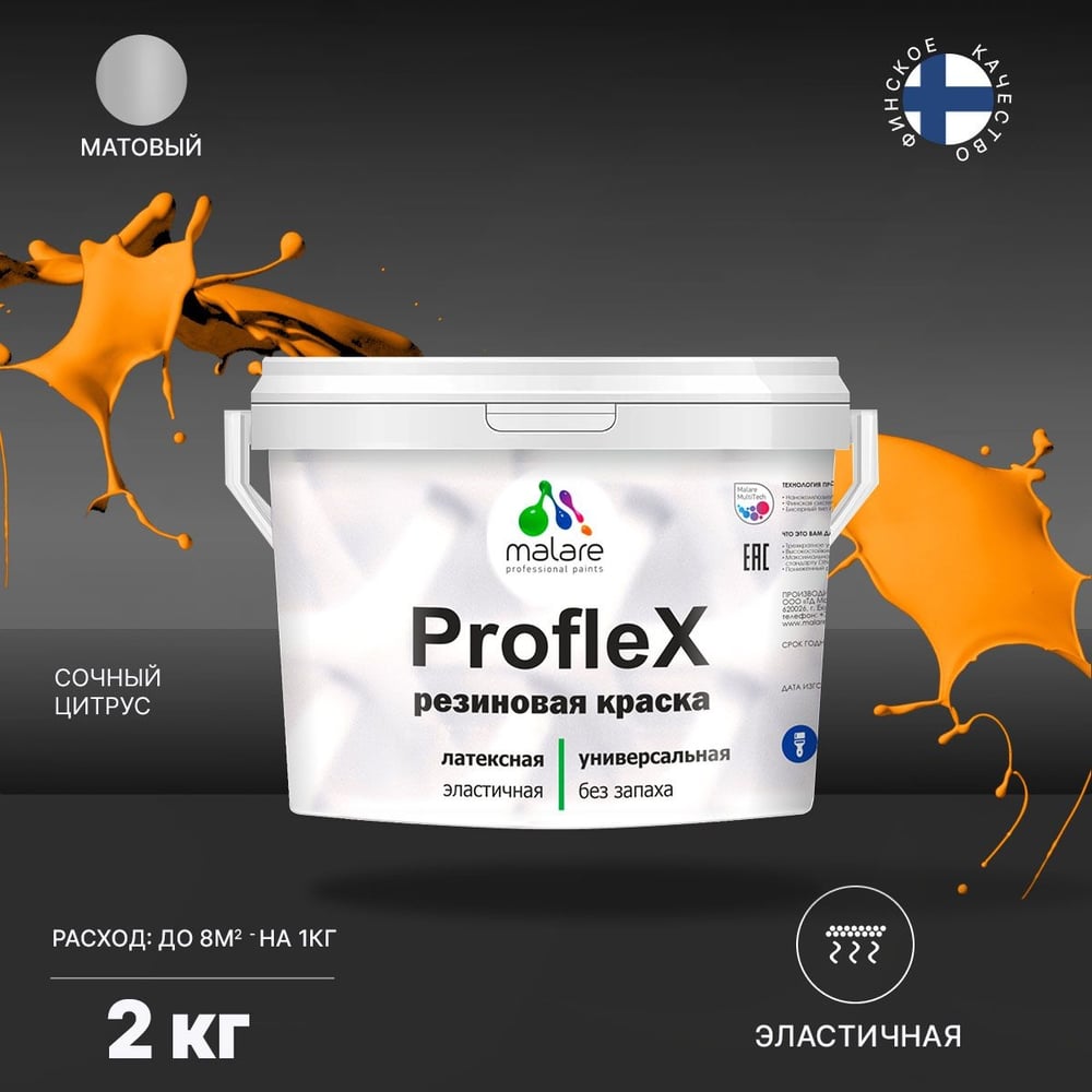 Резиновая краска MALARE Proflex для фасадов, крыш и цоколей, матовая, сочный цитрус, 2 кг 2036751538057