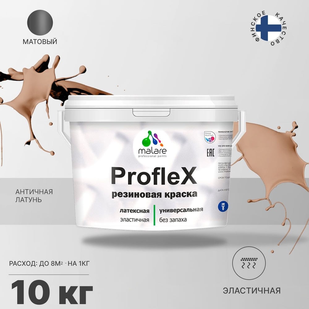 Резиновая краска MALARE Proflex для фасадов, крыш и цоколей, матовая, античная латунь, 10 кг 2036751484446