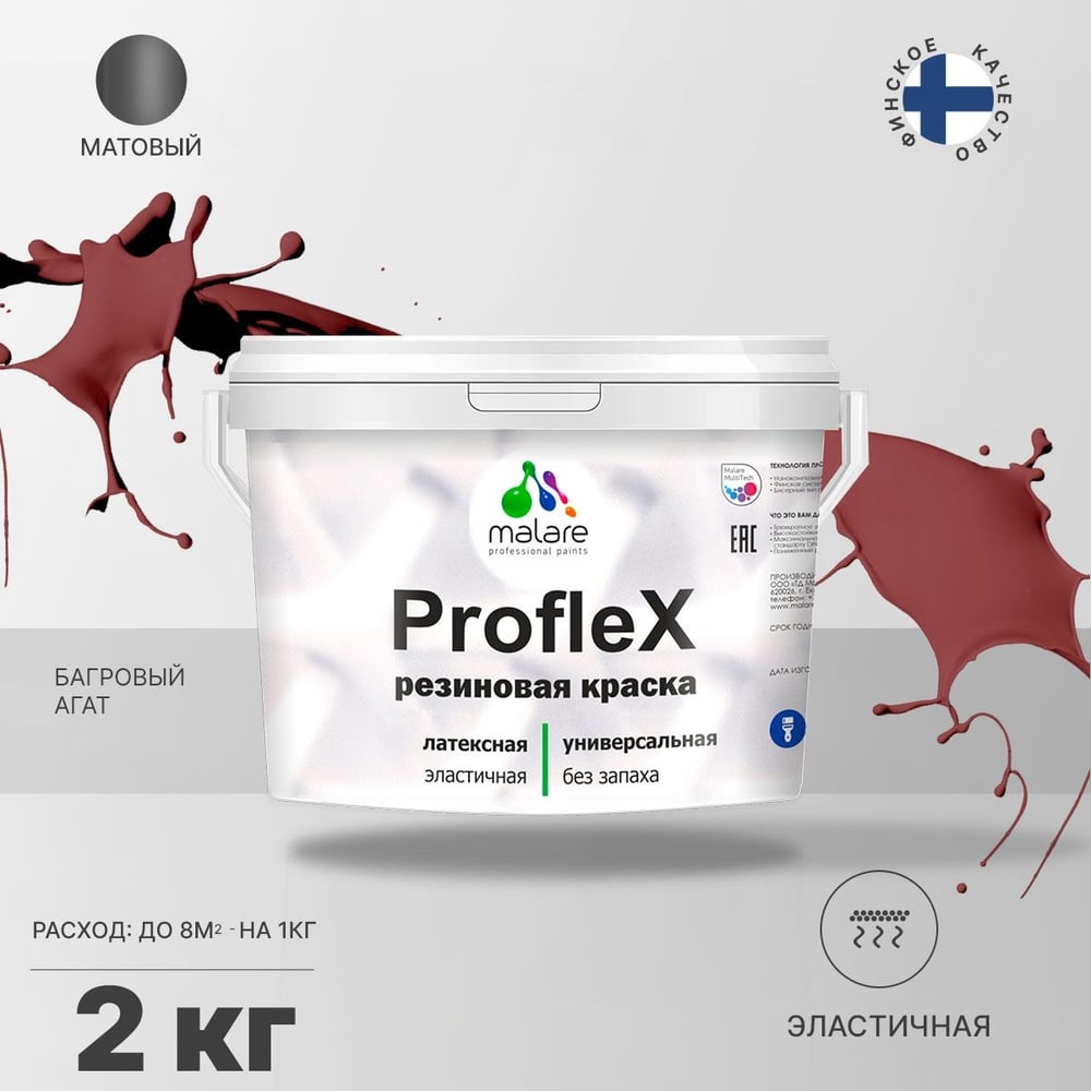 Резиновая краска MALARE Proflex для фасадов, крыш и цоколей, матовая, багровый агат, 2 кг 2036751484323