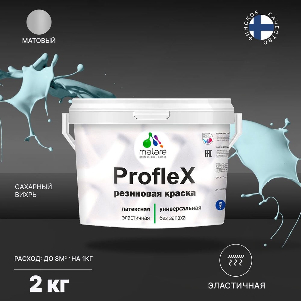 Резиновая краска MALARE Proflex для фасадов, крыш и цоколей, матовая, сахарный вихрь, 2 кг 2036754606296