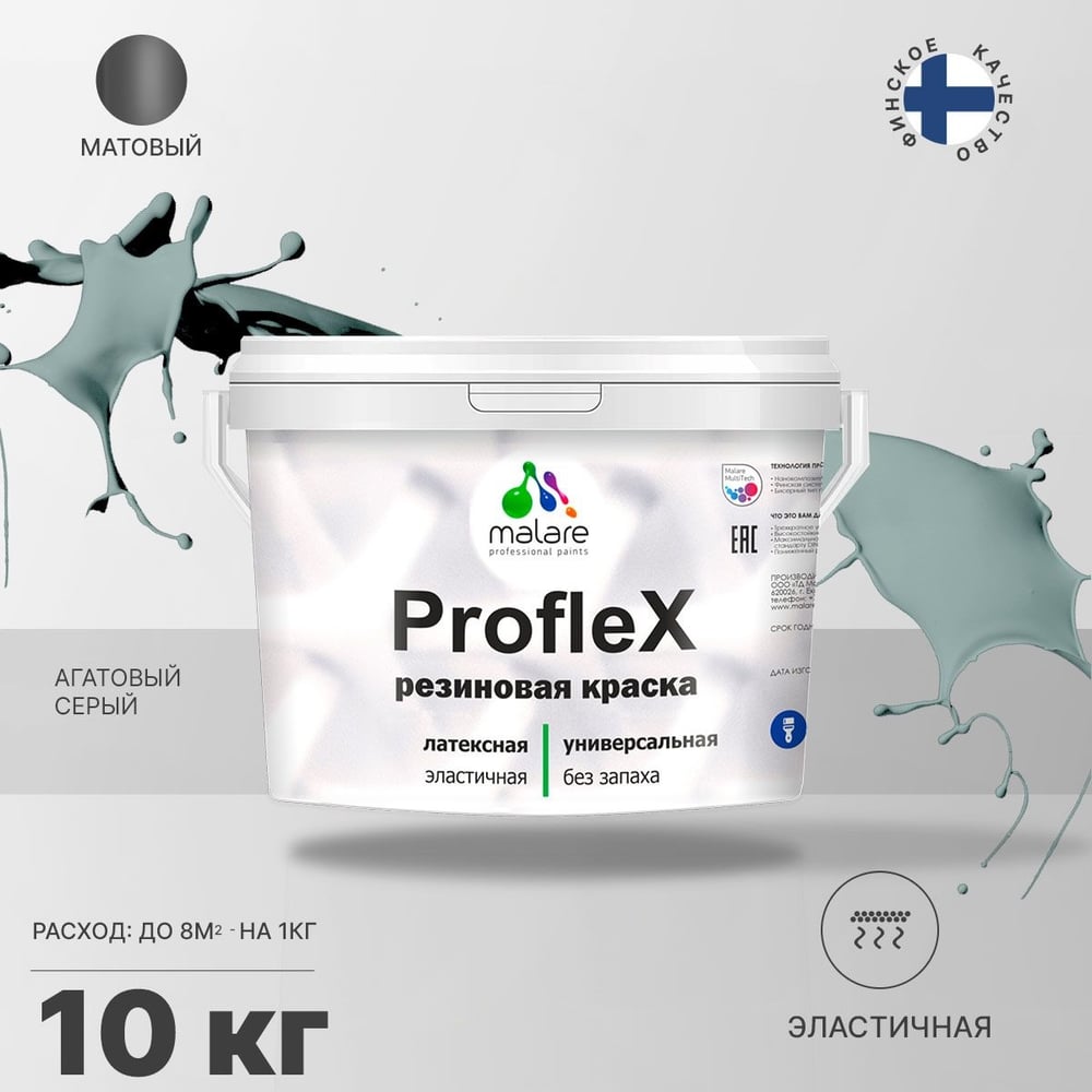 Резиновая краска MALARE Proflex для фасадов, крыш и цоколей, матовая, агатовый серый, 10 кг 2036751484415