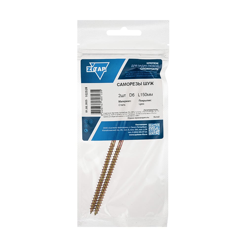 Саморез ШУж с потайной головкой 6,0x150 мм, 2 шт в пакете Zitar 102528
