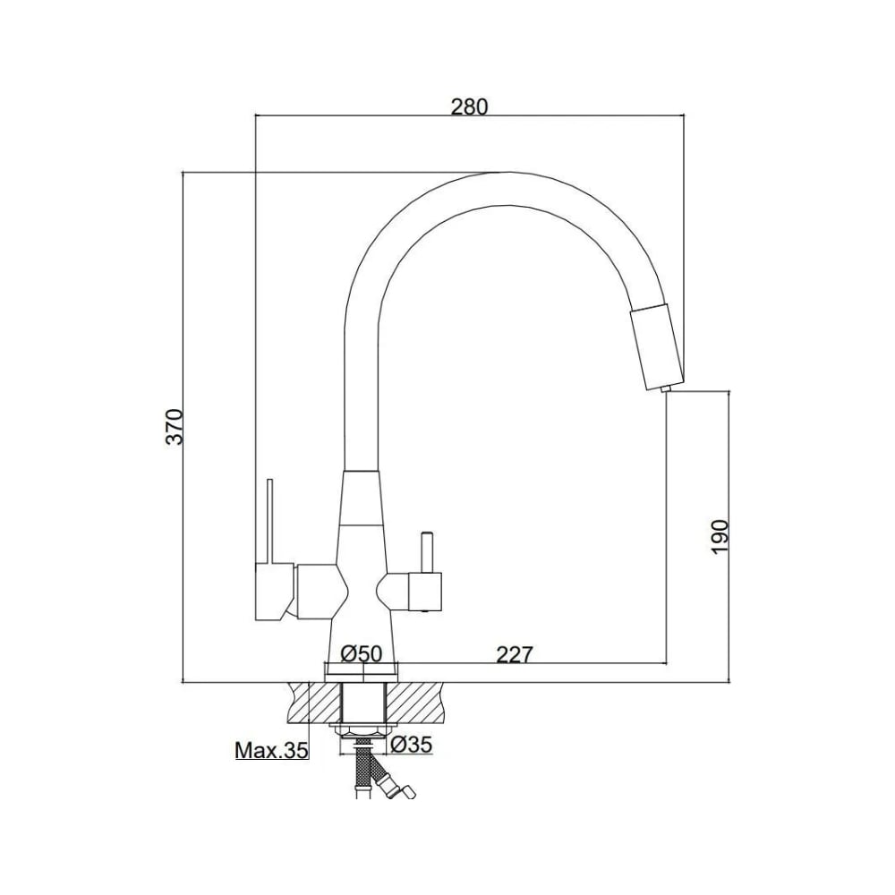 | Диаметр отверстия в раковине | 35 мм |