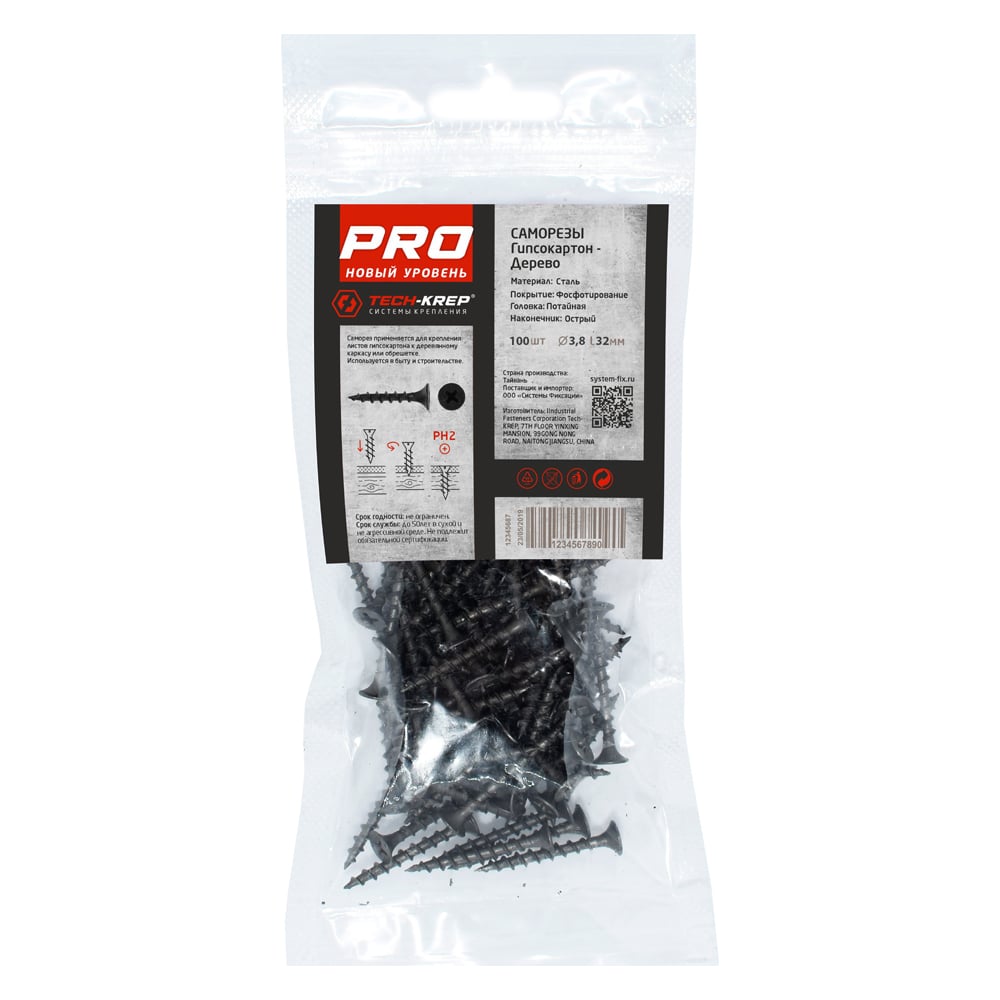 Усиленный саморез Tech-Krep PRO СГД 3,8х32 100 шт - пакет 146424