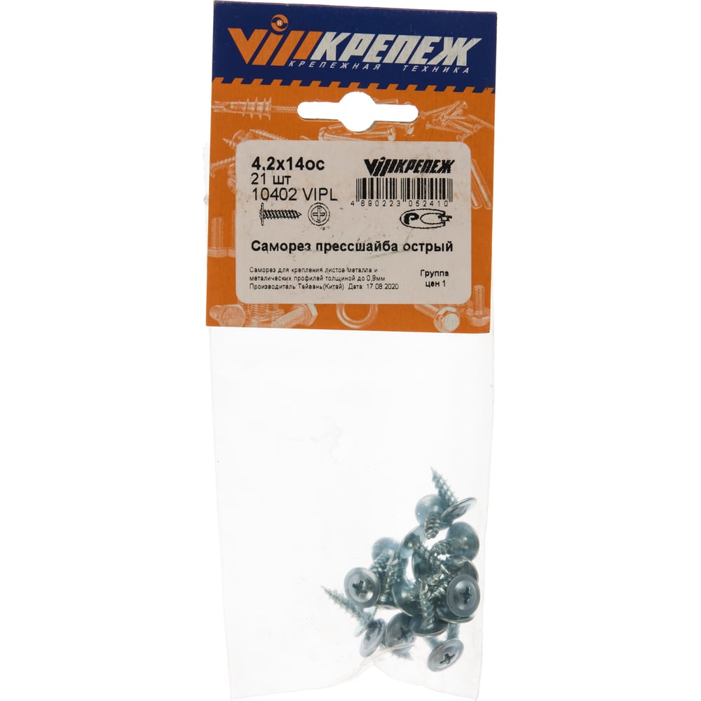 Саморез с прессшайбой VIPКрепеж острый, 4,2х14, 21 шт. 10402 VIP