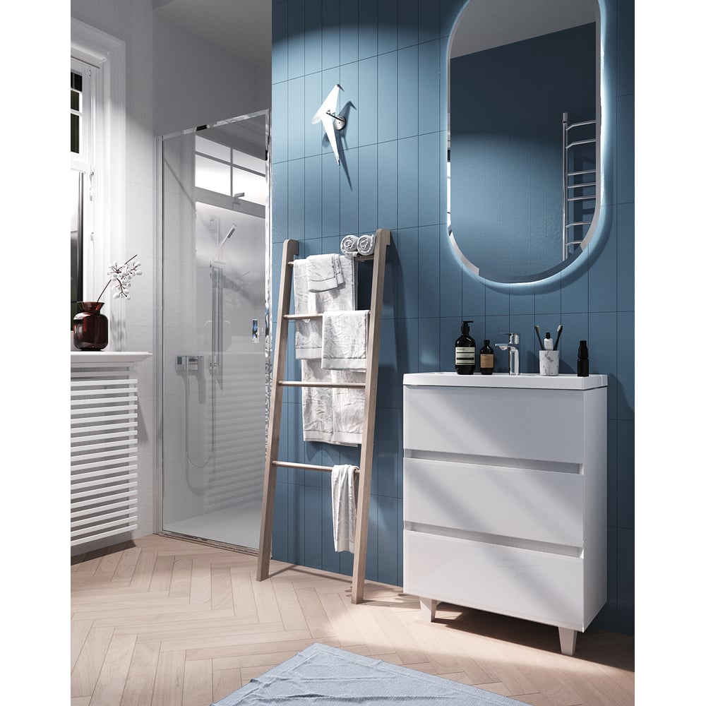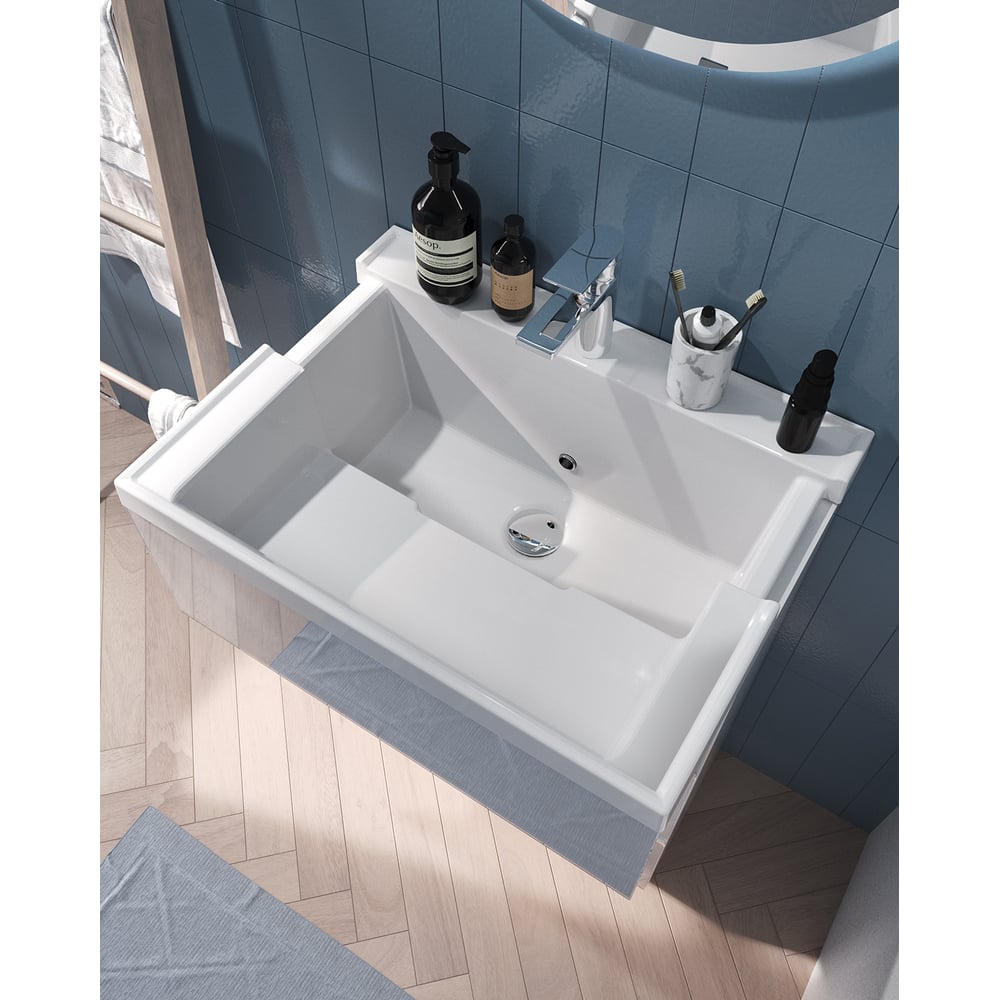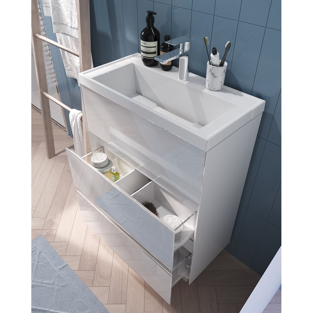 Тумба с раковиной Marka One в ванную Bumble 60см Напольная 2 ящика Белый глянец У90671