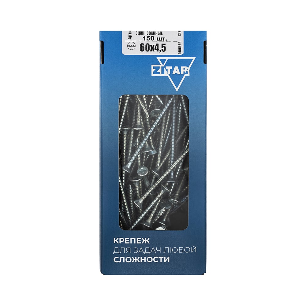 Универсальный саморез Zitar 60х4,5 мм 150 шт оцинкованный, коробка с окном 102194