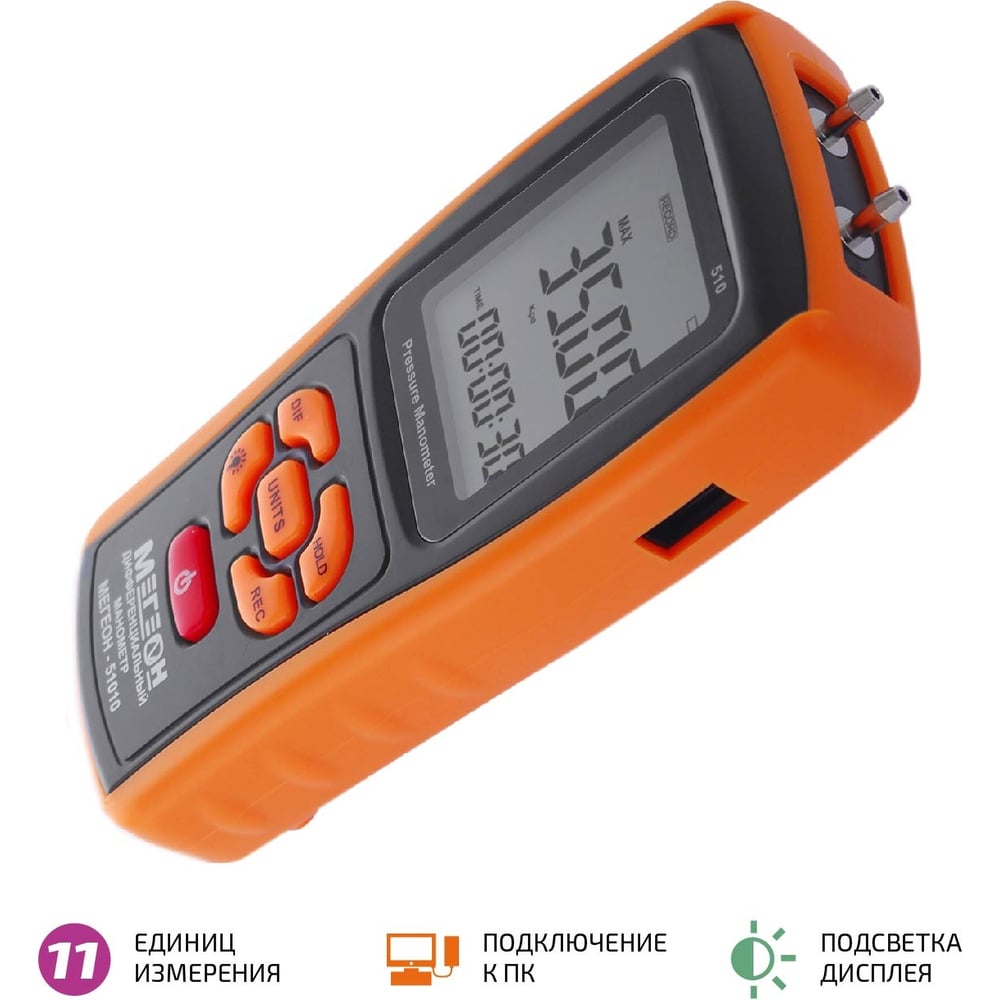 | Единицы измерения | Бар, МБар, кПа, кг-сила/см2, мм.рт.ст., см.водн.ст., унц-сила/дюйм2, фунт/дюйм2, дюйм рт.ст., дюйм водн.ст., фут водн. ст |