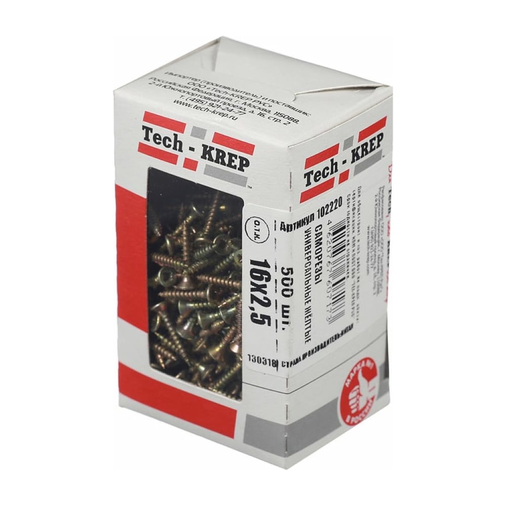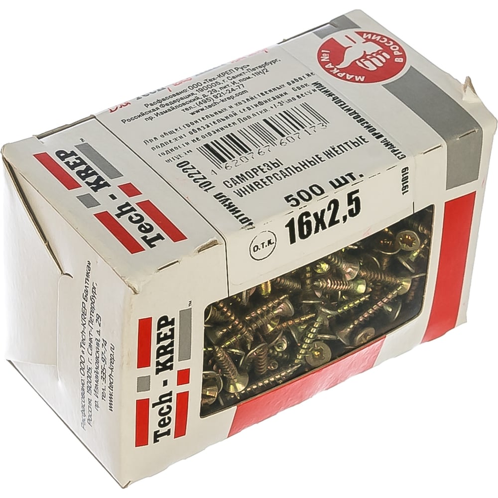 Универсальный саморез Tech-Krep 16х2,5 мм 500 шт желтый, коробка с окном 102220
