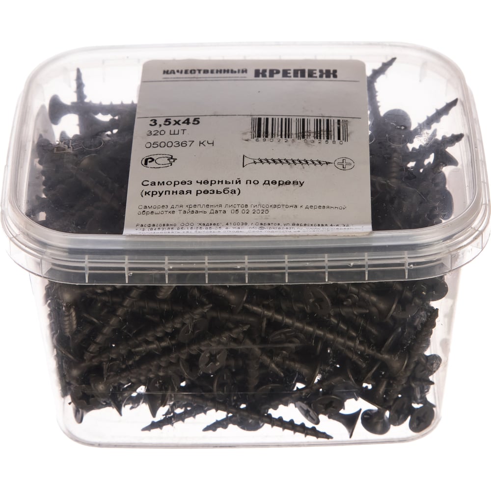 Саморез Качественный Крепеж 3,5х45 потай, крупная резьба, оксид 320 шт 0500367 КЧ