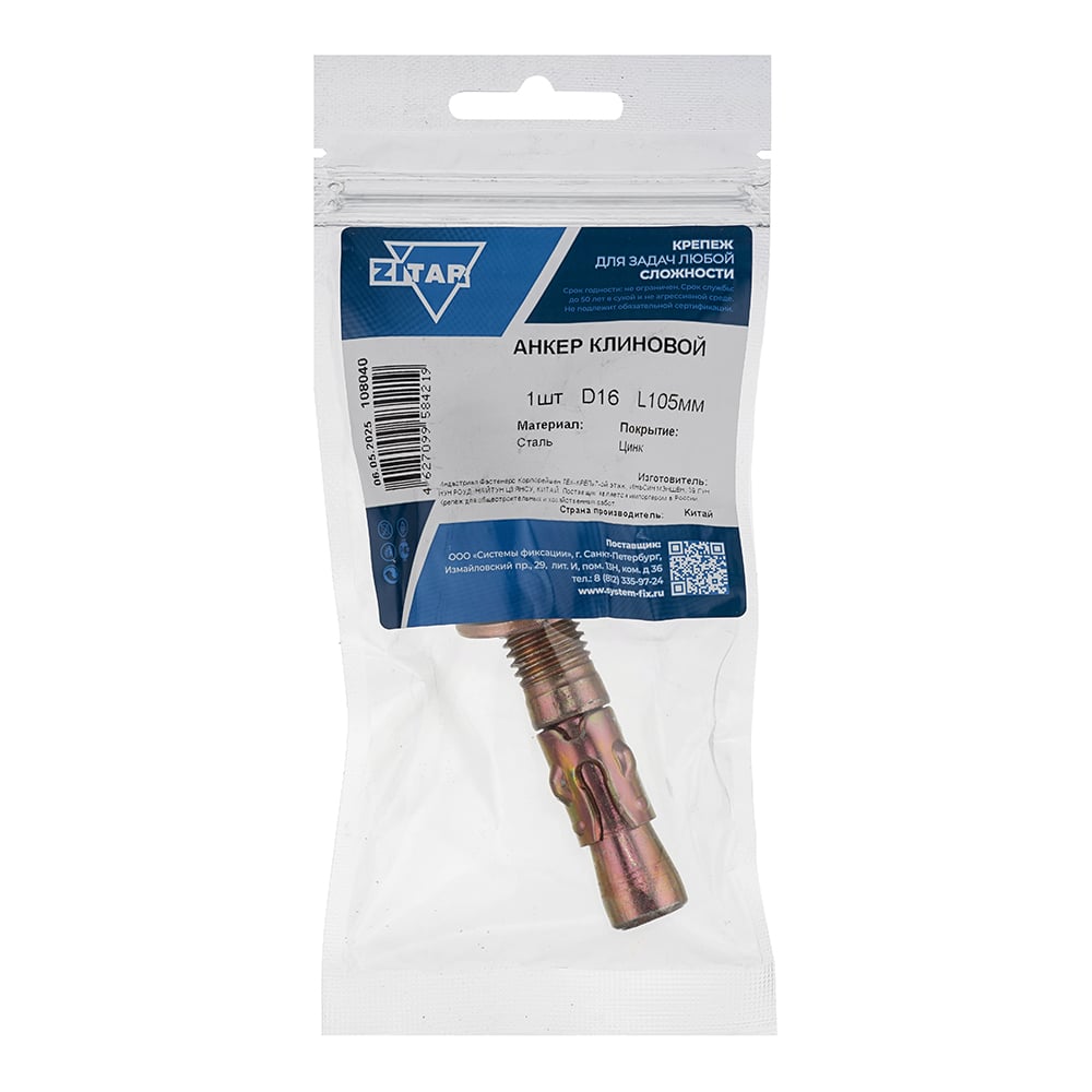 Клиновой анкер 16x105 мм, 1 шт, пакет Zitar 108040