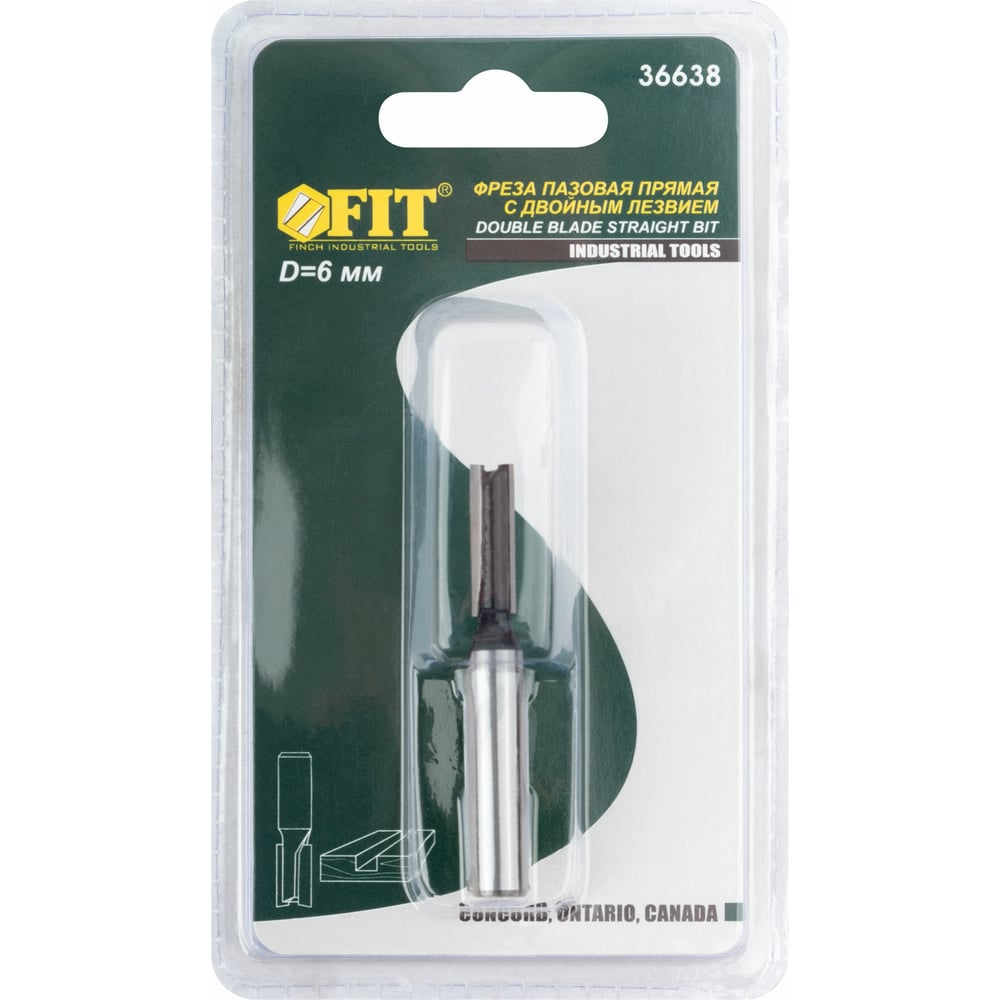 Фреза пазовая (6х20х58 мм; 2 лезвия; хвостовик 8 мм) по дереву FIT IT 36638