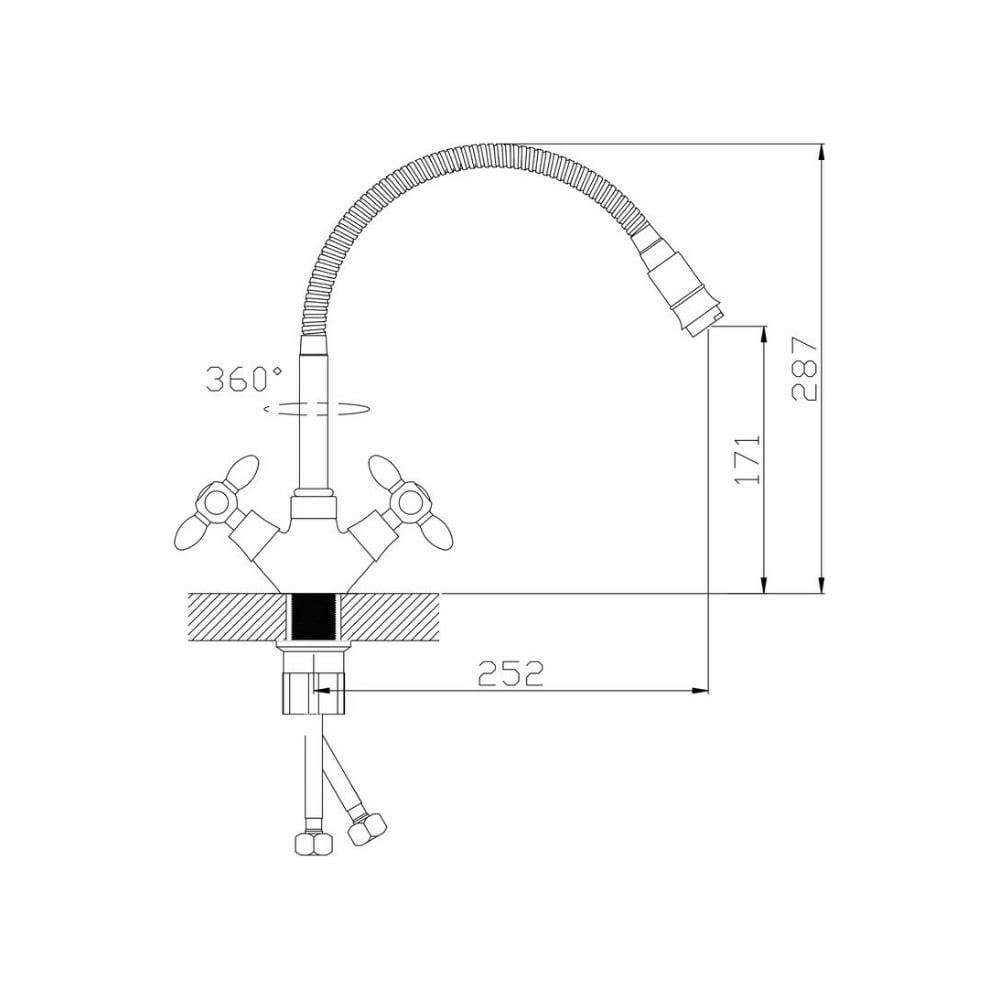 Смеситель для кухни Антей Радуга с 2-мя рукоятками, с высоким гибким изливом желтый 5870712-ANT