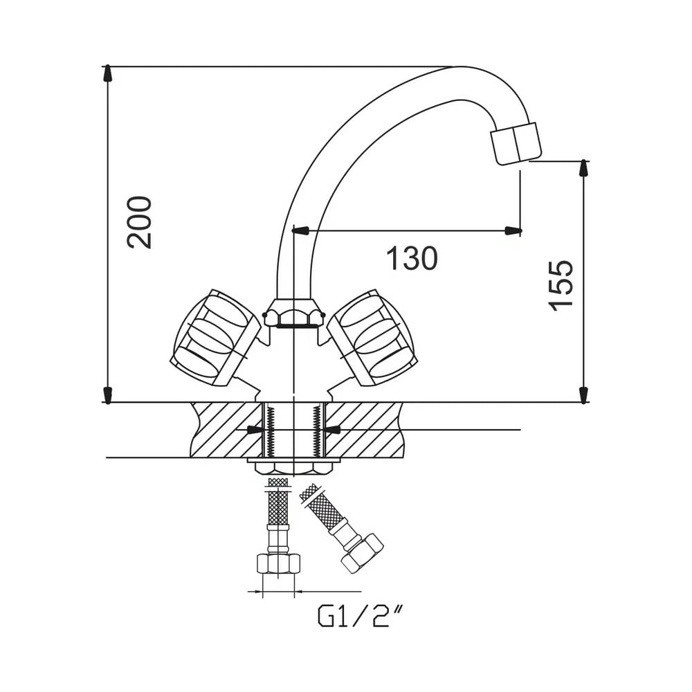 Смеситель д/кухни Gota Rocio с 2-мя рукоятками с высоким изливом креп.гайка Прохлада 1/10 342310-GOTA