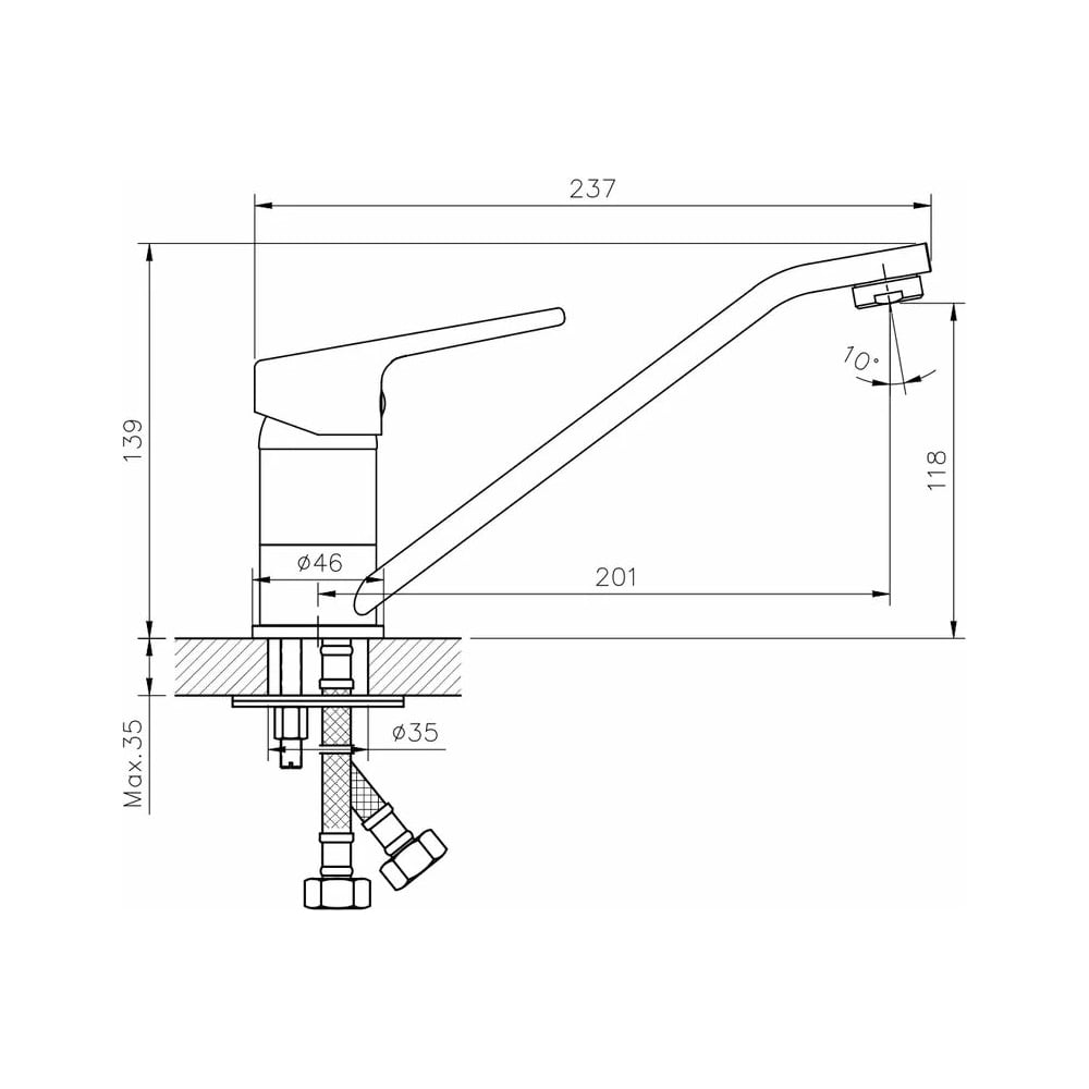 Цвет хром Тип установки настольный/на раковину Стиль современный Материал корпуса латунь Серия New Forest Поворотный излив да Назначение для кухни Тип крепления на шпильку Гибкий излив нет Длина излива 201 мм Высота смесителя 139 мм Лейка нет Термостат нет Встраиваемый нет Подводка в комплекте гибкая Аэратор да Переключатель на фильтр нет Тип смесителя однорычажный Форма излива воды традиционная Запорный клапан керамический картридж Форма смесителя плоская Выдвижной излив нет Излив есть Складной нет С щеткой нет Двойной излив нет Диаметр картриджа 35 мм Направление струи вертикальное Диаметр отверстия в раковине 35 мм Высота излива 118 мм Мах толщина столешницы 35 мм Расположение термостата без термостата