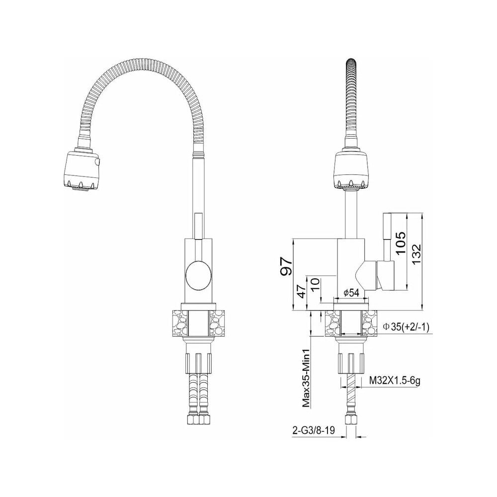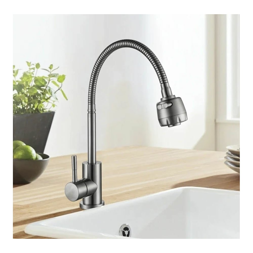 Цвет сатин Тип установки настольный/на раковину Вес нетто 1.73 кг Стиль современный Материал корпуса нержавеющая сталь Поворотный излив да Назначение для кухни Тип крепления на гайку Гибкий излив да Лейка да Термостат нет Встраиваемый нет Подводка в комплекте гибкая Аэратор да Переключатель на фильтр нет Тип смесителя однорычажный Форма излива воды традиционная Запорный клапан керамический картридж Форма смесителя округлая Выдвижной излив нет Излив есть Складной нет С щеткой нет Двойной излив нет Диаметр картриджа 35 мм Размер крепления G3/8 Направление струи под углом Диаметр отверстия в раковине 35 мм Высота излива 105 мм Мах толщина столешницы 35 мм Расположение рычага сбоку Расположение термостата без термостата
