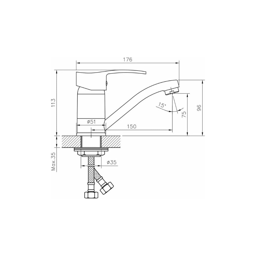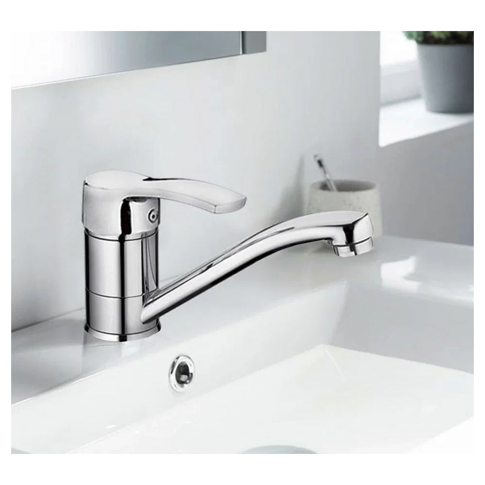 Цвет хром Тип установки настольный/на раковину Вес нетто 1.12 кг Стиль современный Материал корпуса латунь Поворотный излив да Назначение для кухни Тип крепления на гайку Гибкий излив нет Длина излива 150 мм Высота смесителя 113 мм Лейка нет Термостат нет Встраиваемый нет Подводка в комплекте гибкая Аэратор да Переключатель на фильтр нет Тип смесителя однорычажный Форма излива воды традиционная Запорный клапан керамический картридж Форма смесителя плоская Выдвижной излив нет Излив есть Складной нет С щеткой нет Двойной излив нет Диаметр картриджа 40 мм Направление струи вертикальное Диаметр отверстия в раковине 35 мм Высота излива 75 мм Мах толщина столешницы 35 мм Расположение термостата без термостата