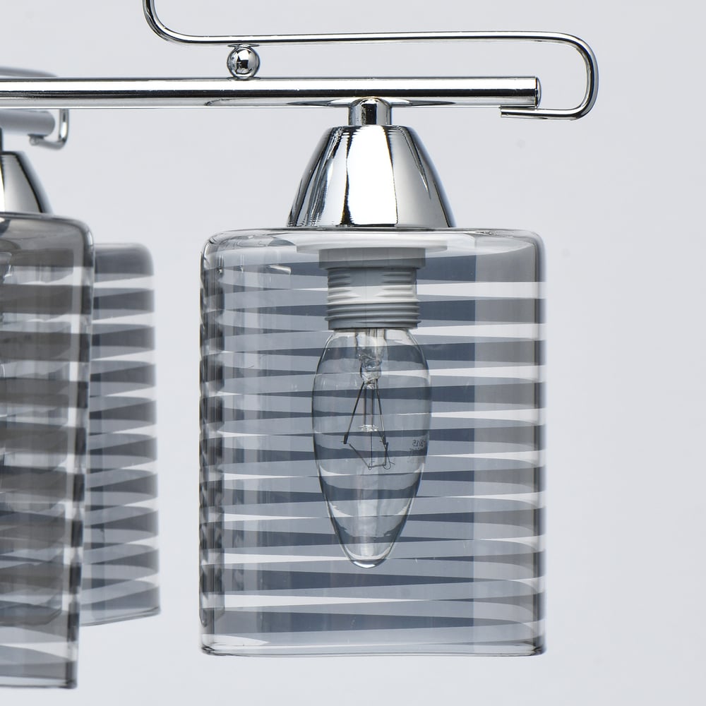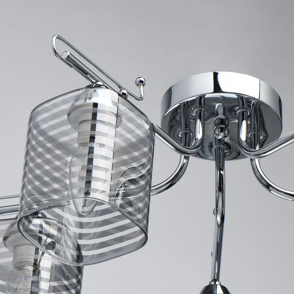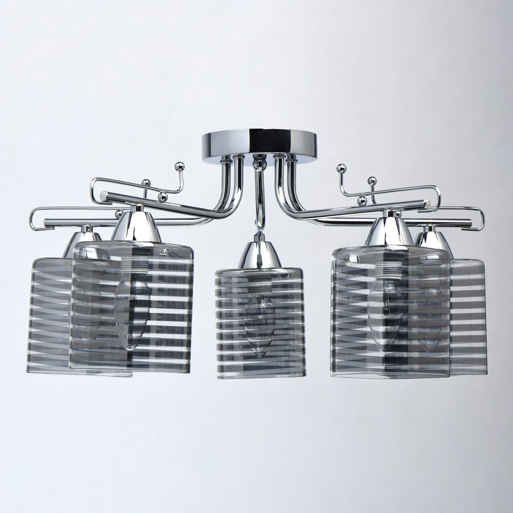 Тип накладные Лампа в комплекте нет Вес нетто 1.8 кг Мощность светильника 200 Вт Цоколь E14 Тип лампы накаливания Защита от пыли и влаги IP20 Стиль современный Материал плафона стекло Коллекция Олимпия Цвет плафона дымчатый Тип крепления планка Цветопередача не применимо Ra Количество ламп 5 Высота 25 см Мощность лампочки 40 Вт Площадь освещения 10 м² Напряжение питания 220В Регулировка яркости нет Материал арматуры металл Цвет арматуры хром Трансформатор в комплекте нет Провод провод без вилки Основной цвет хром Диаметр 50 см Тип плафонов тонированный Поверхность арматуры глянцевая Поверхность плафонов глянцевая LED-подсветка нет