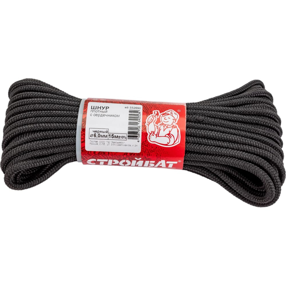 Плотный шнур с сердечником Стройбат черный, 6 мм х 15 м 33269