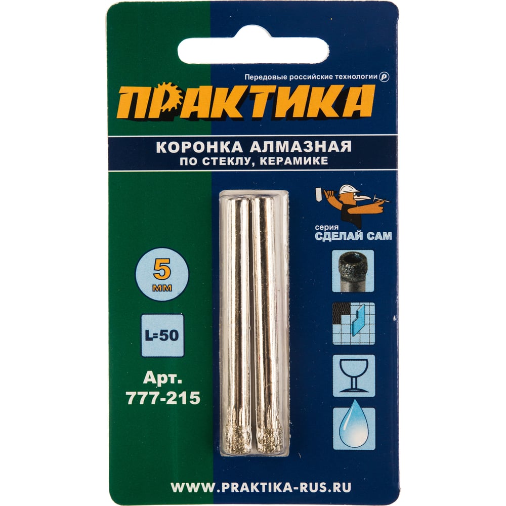 Коронка алмазная по стеклу и керамике (2 шт; 5 мм) ПРАКТИКА 777-215