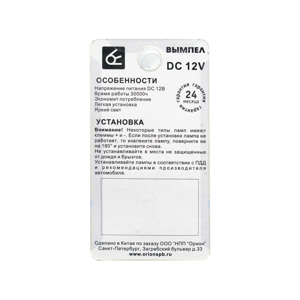 Автомобильная лампочка Вымпел BA9S-T4W 5SMD 5050 WHITE 5107